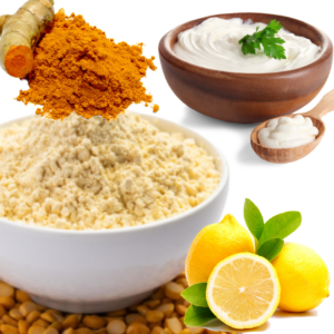 मुल्तानी मिट्टी , चंदन पाउडर, हल्दी & टमाटर